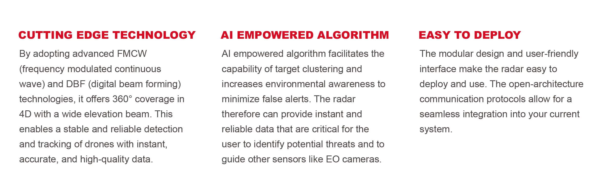 | DRONE DETECTION RADRA SPECIFICATIONS | ||