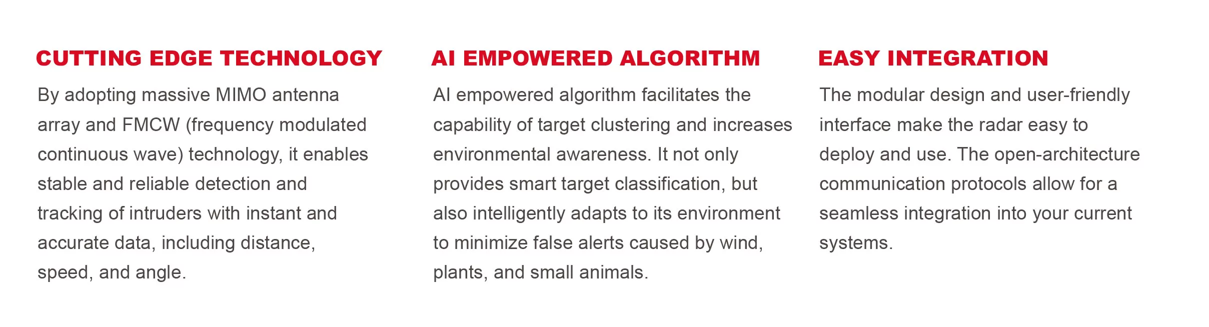 | PERIMETER SECURITY RADAR SPECIFICATIONS | ||||||||